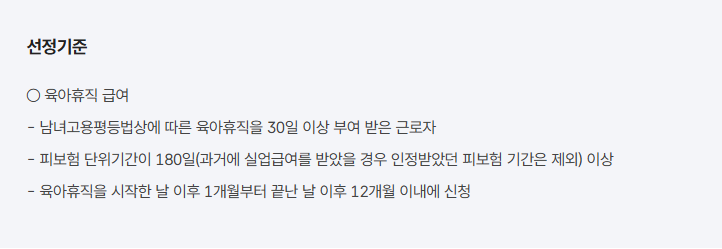 - 육아휴직 시작일 이후 1개월부터 종료일 이후 12개월 이내에 신청 가능